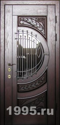 Дверь с массивом, ковкой и стеклом, резьбой, карнизом