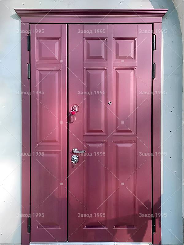 Двустворчатая стальная дверь с наборным МДФ окрас по RAL