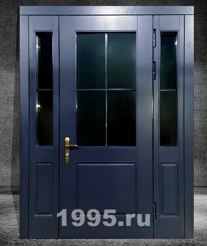 Парадная дверь с боковыми вставками, ковкой и стеклом